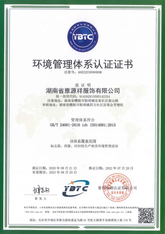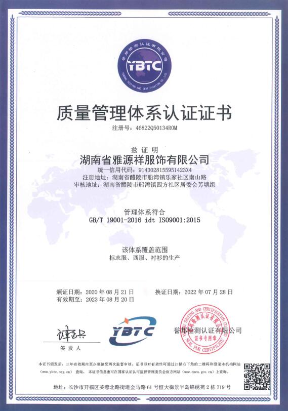 1、企業(yè)概況 湖南省雅源祥服飾有限公司地處湘贛邊境素有瓷城之稱的醴陵郊區(qū),企業(yè)創(chuàng)建于1995年,是行政執(zhí)法制服、被裝的生產(chǎn)企業(yè)。2、組織機構(gòu) 跟隨改革開放的步伐,我公司不斷發(fā)展壯大,公司董事會下設總經(jīng)理辦公室、生產(chǎn)部、技術部、質(zhì)檢部、財務部、采購部、業(yè)務部等部門,下設有流水線西服生產(chǎn)車間、標志服生產(chǎn)車間、襯衣生產(chǎn)車間、... [更多]